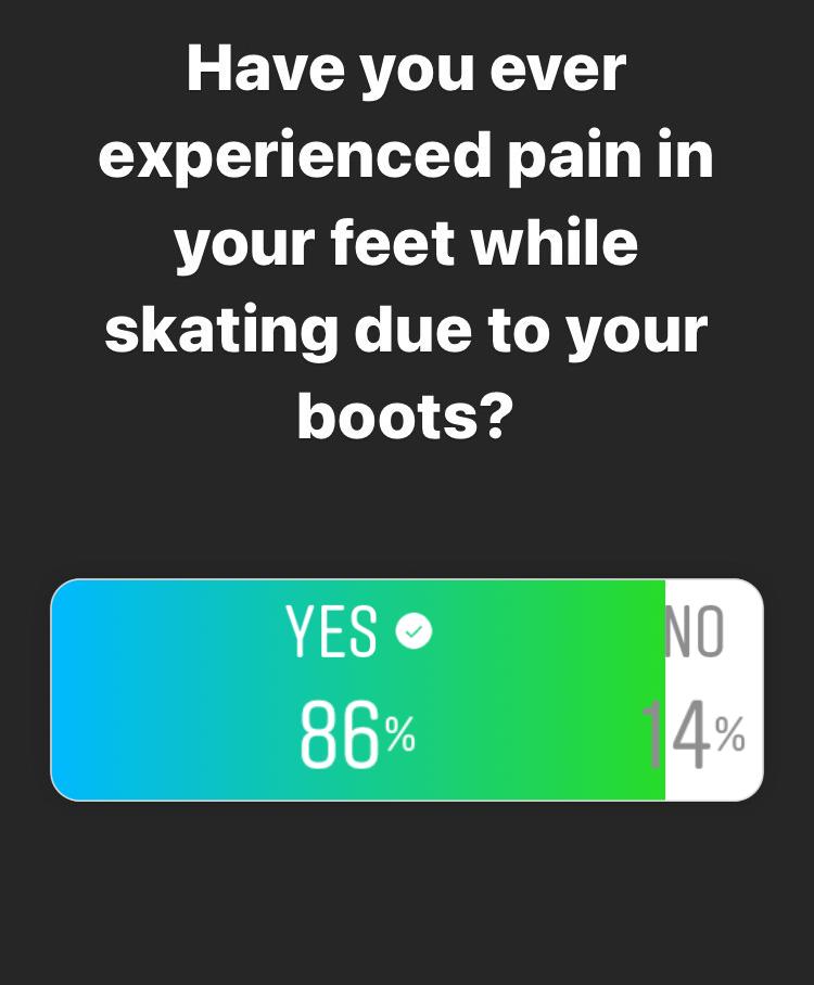 The first question I asked was, “Have you ever experienced pain in your feet while skating due to your boots?”, 86% of the people who voted said yes.